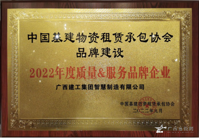 廣西建工集團(tuán)智慧制造有限公司榮獲“2022年度質(zhì)量服務(wù)品牌企業(yè)”,公司董事長、黨總支書記李日紅榮獲“2022 年全國基建物資租賃承包行業(yè)杰出創(chuàng)新人才”稱號。